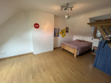 A l'étage, une grande mezzanine qui pourra, par exemple, être aménagée en salle de jeux, deux chambres, un WC et une salle de bain.