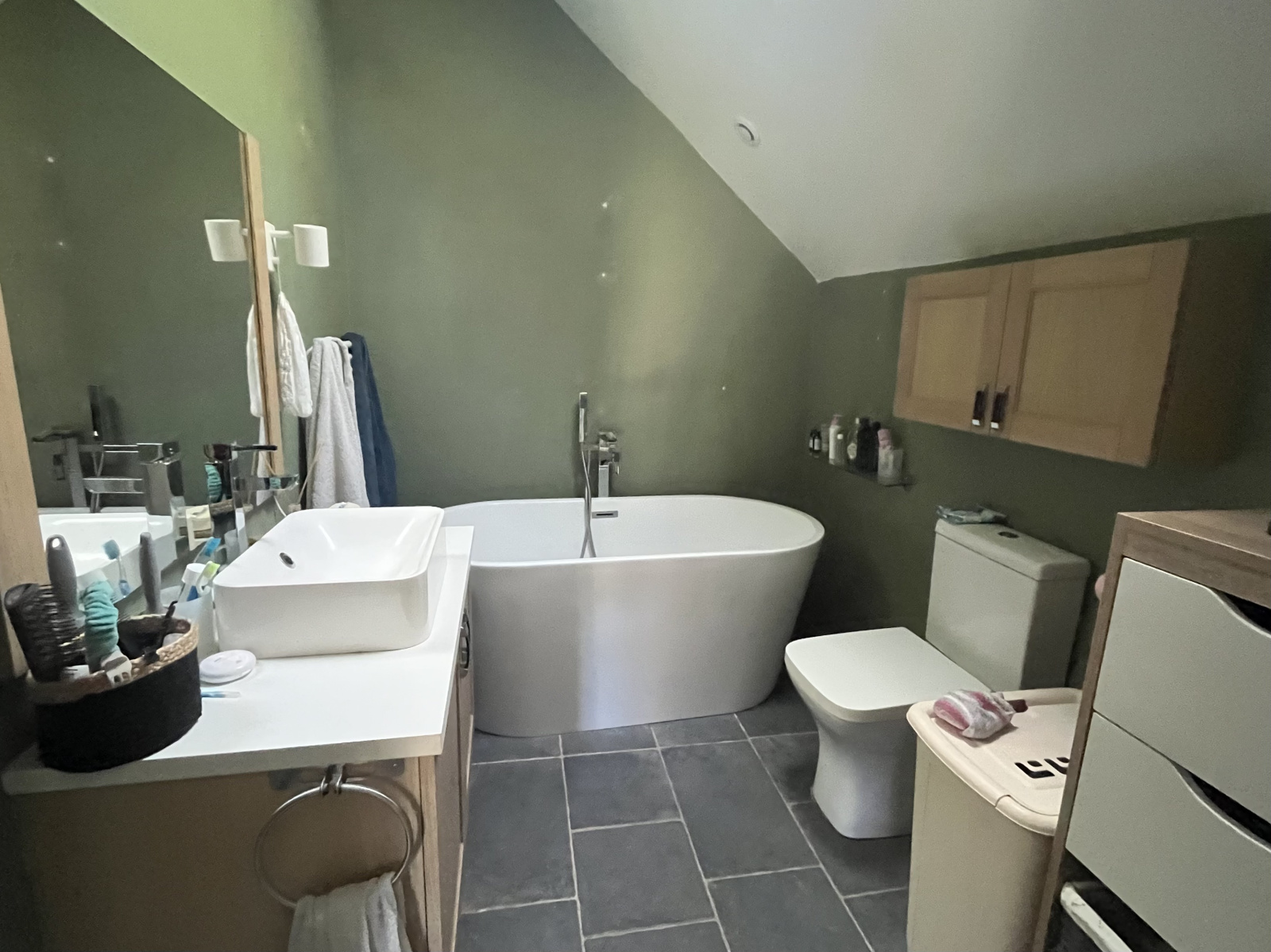 Au rdc, vous trouverez une cuisine, un salon ainsi que des WC. A l'étage, une chambre et une salle de bain avec WC.