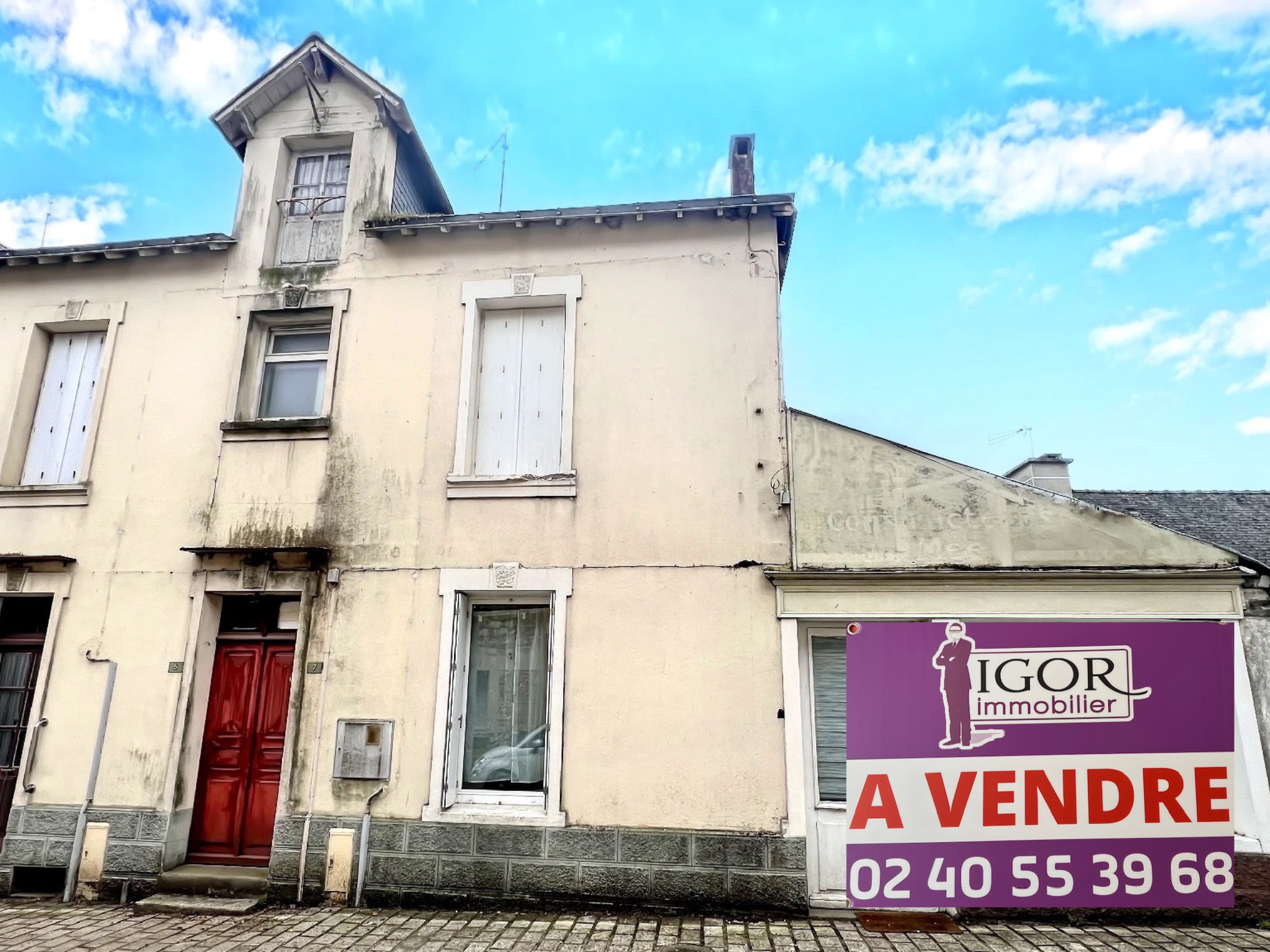 Derval (44590)À VENDRE – MAISON DE VILLE À RAFRAÎCHIR – 210 m² – BEAU POTENTIEL