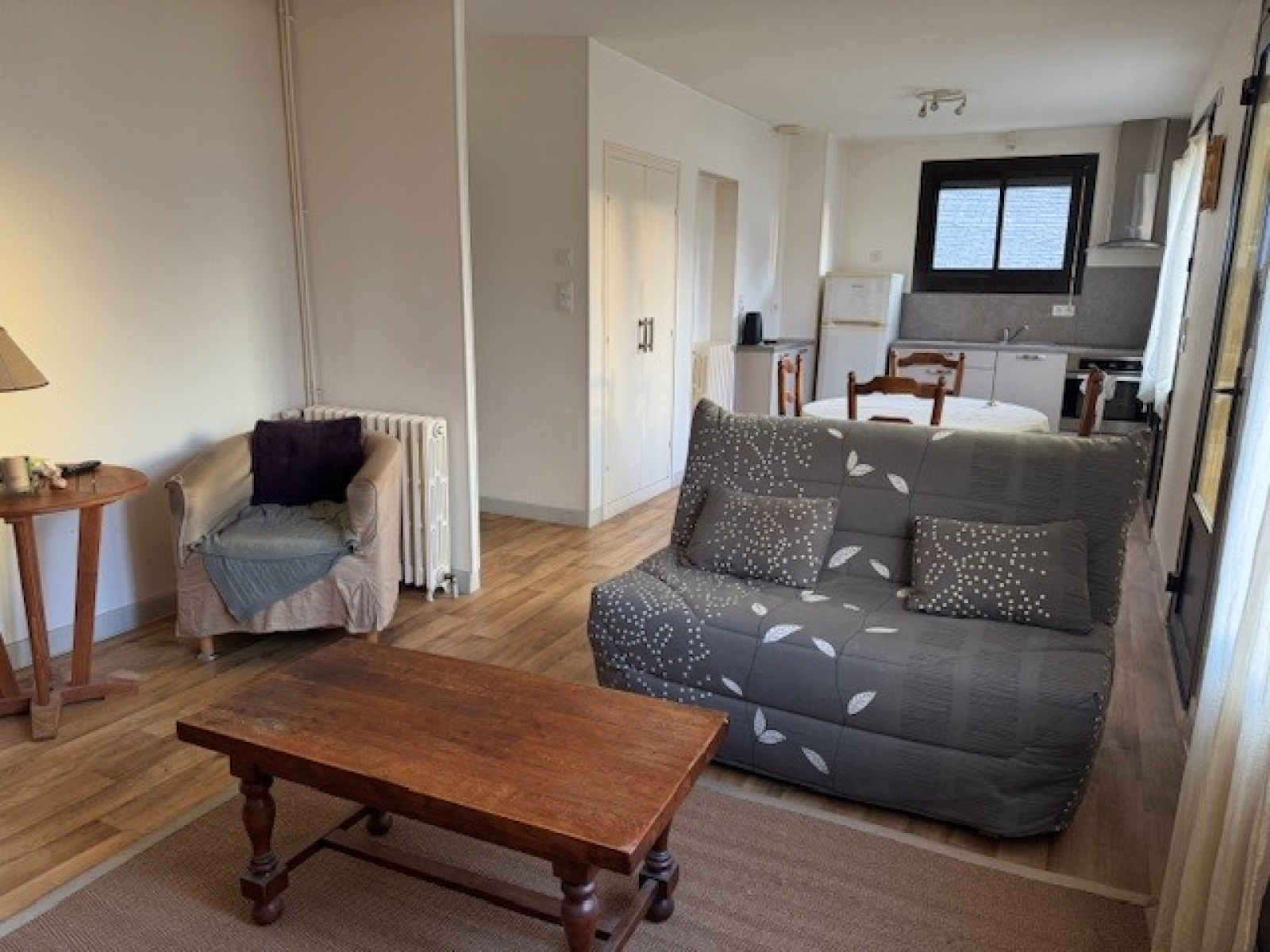 Elle se compose d'une petite cuisine A/E donnant sur un salon séjour. 1 grande chambre et 1 bureau pouvant faire usage de chambre, 1 wc et une salle d'eau. Nombreux placards.